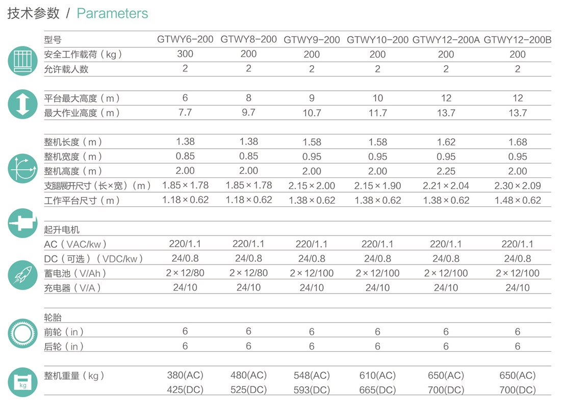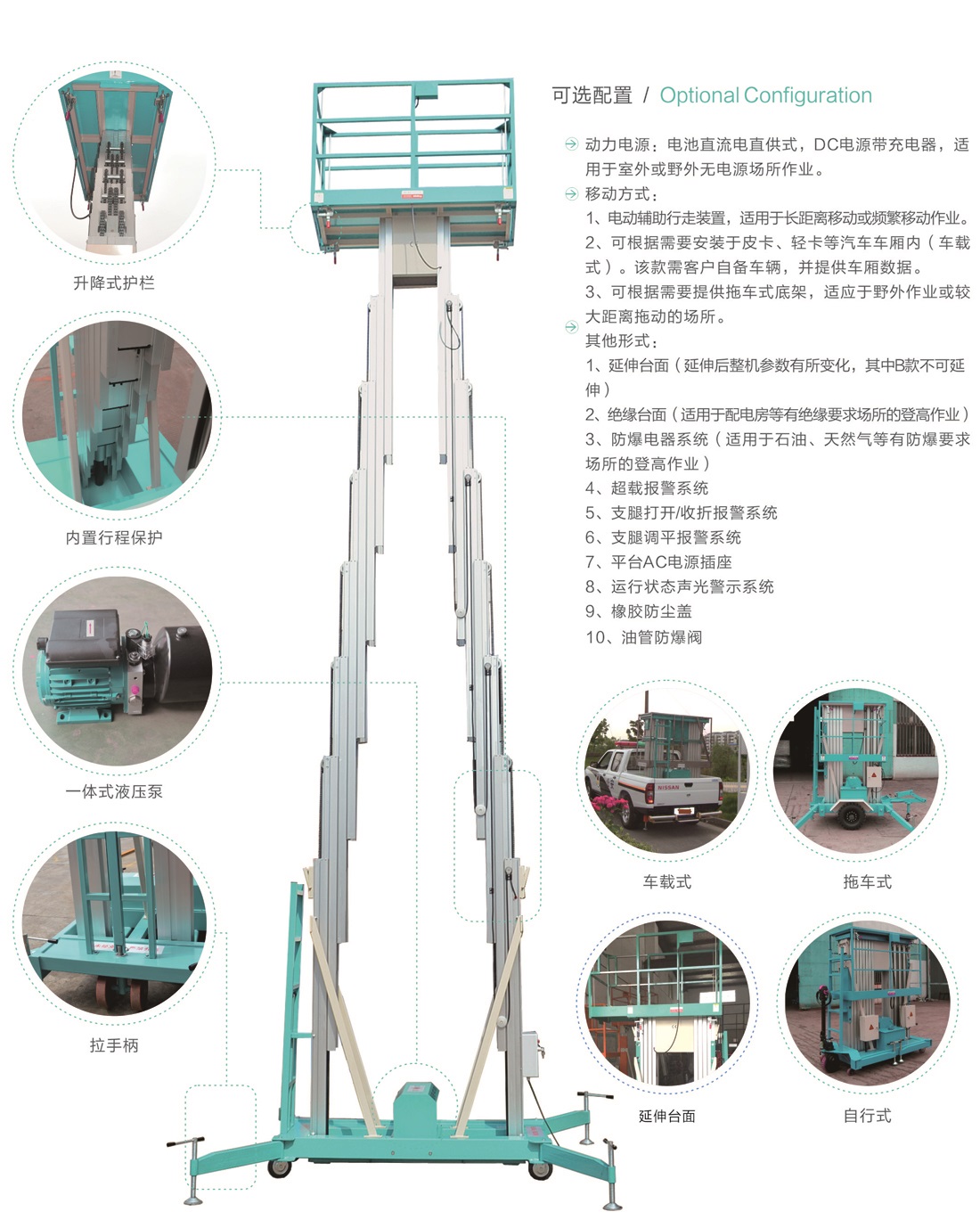 平臺(tái)最大高度規(guī)格:可選4m、 6m、8m、9m、10m