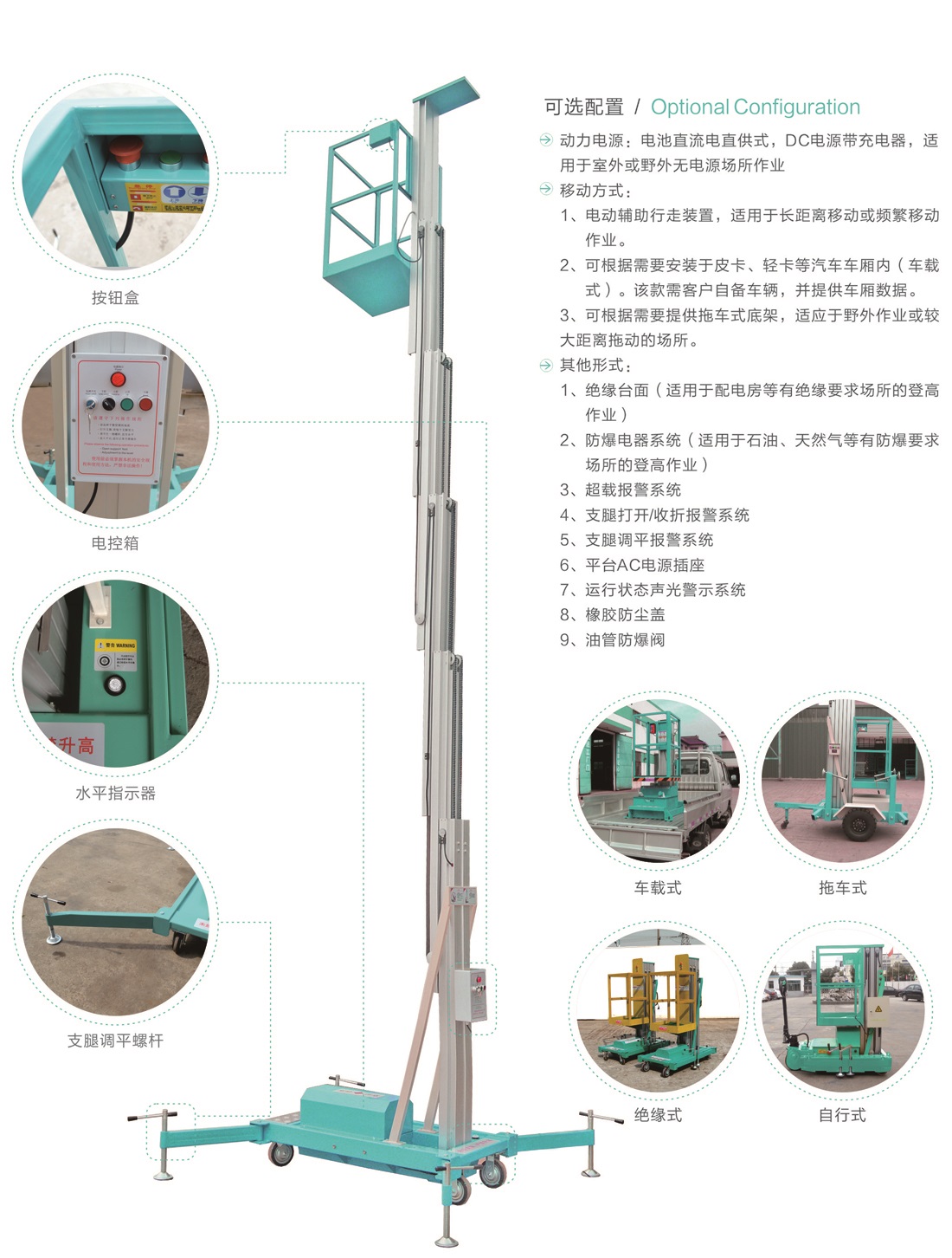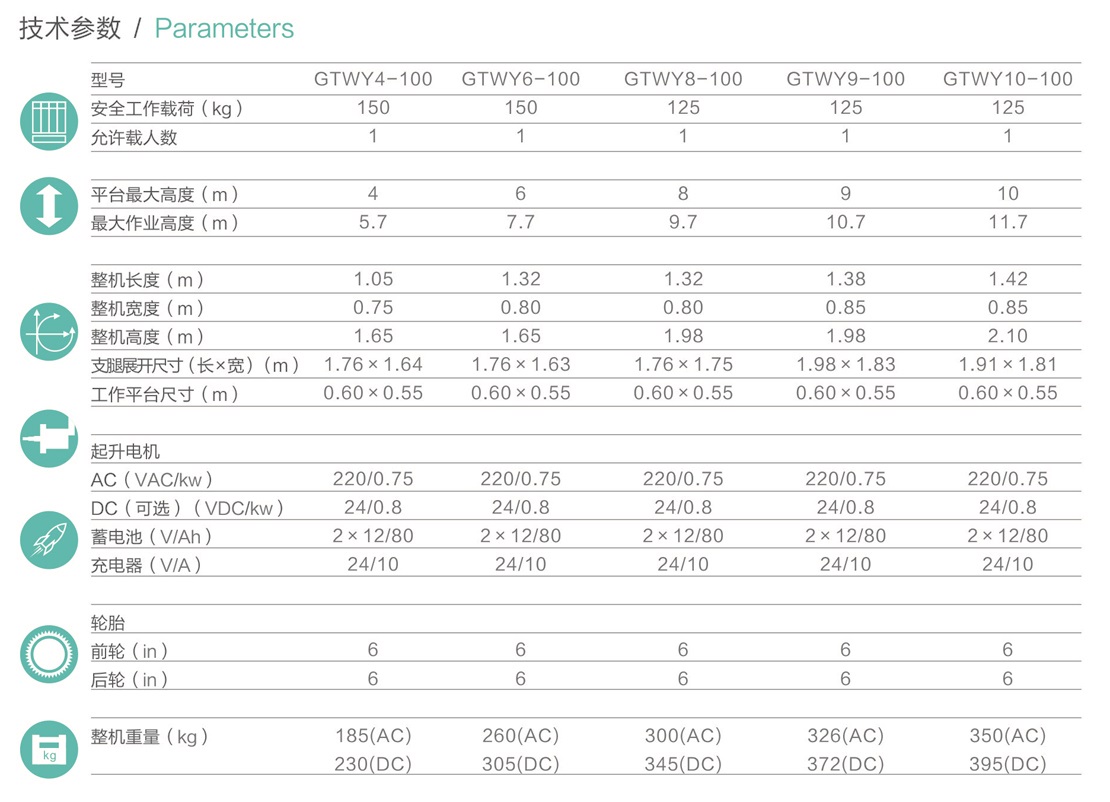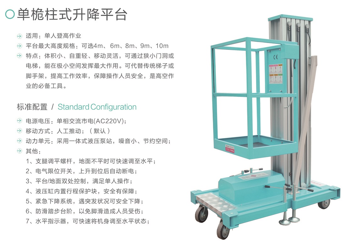 平臺(tái)最大高度規(guī)格:可選4m、 6m、8m、9m、10m
