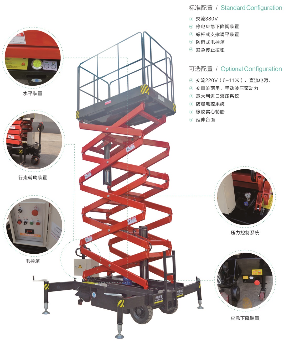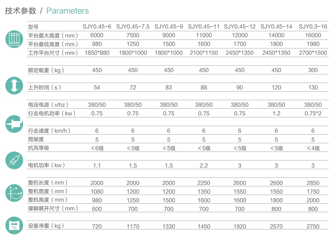 平臺最大高度規格:可選6m、7.5m、9m、11m、12m、14m、16m。